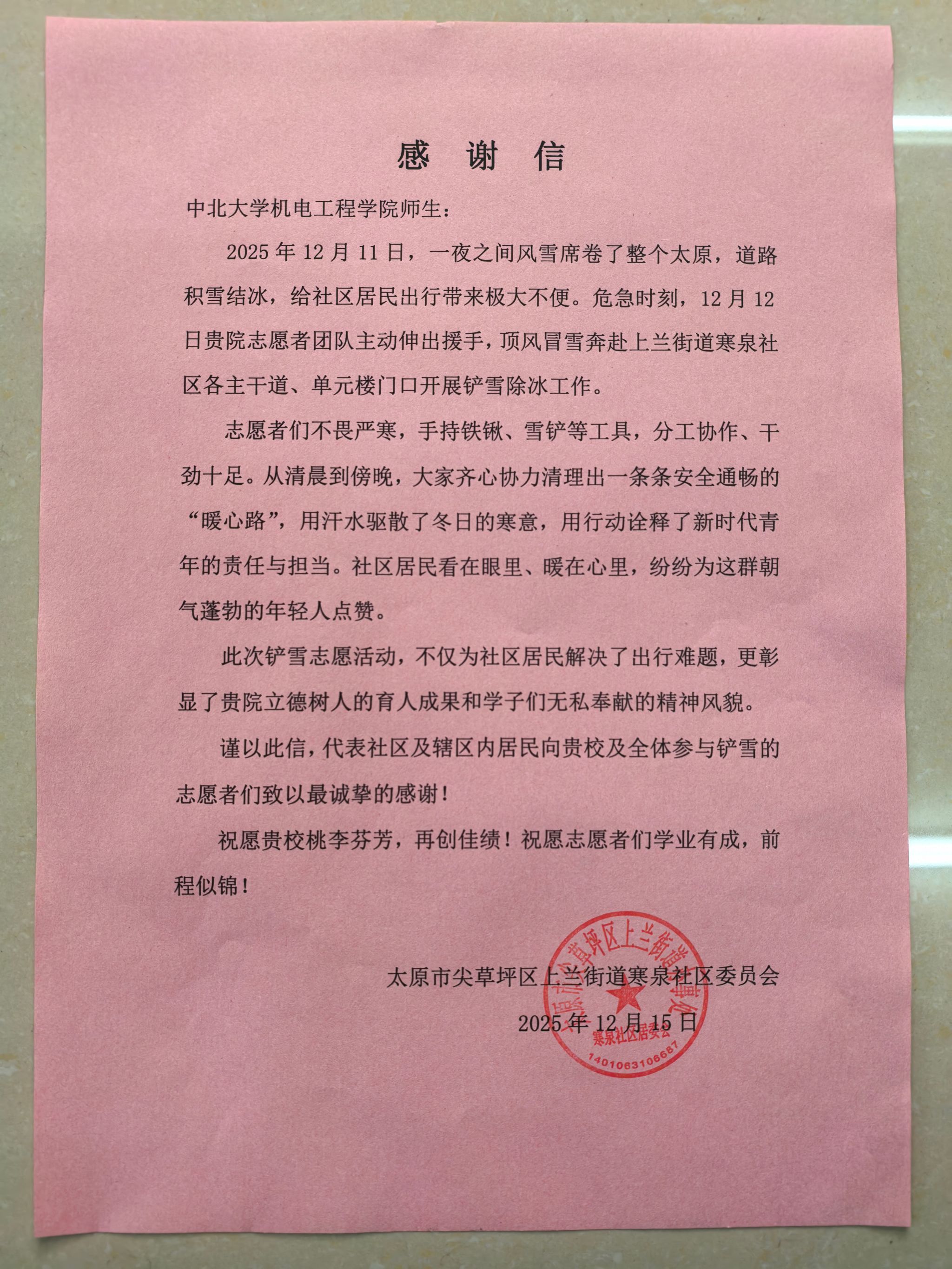 学子主动请缨,组建志愿服务队投身社区除雪一线,以实际行动践行志愿精神,赢得居民广泛赞誉,寒泉社区专门向澳门六合彩