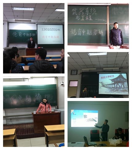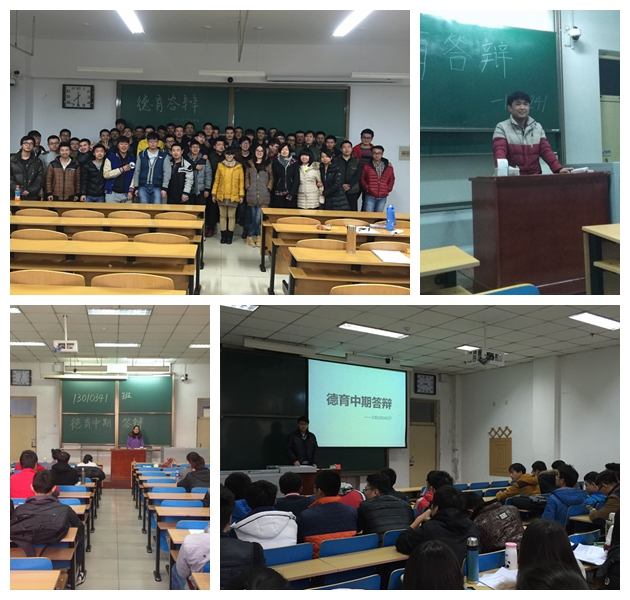 13级同学以班为单位,纷纷开展了德育中期答辩。截止12月30日,13级16个班级已全部完成了德育中期答辩工作。