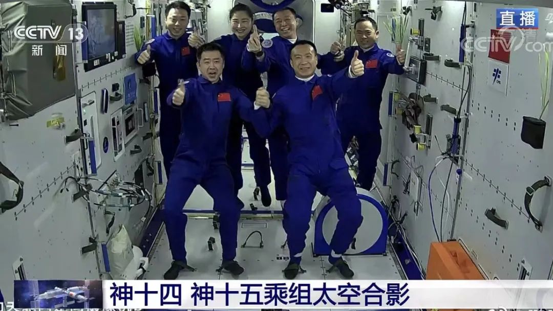 飞船入轨后,按照预定程序,在载人飞船与空间站组合体成功实现自主快速交会对接后,神舟十五号航天员乘组从飞船返回舱进入轨道舱。完成各项准备后,北京时间2022年11月30日7时33分,翘盼已久的神舟十四号航天员乘组顺利打开“家门”,热情欢迎远道而来的亲人入驻“天宫”。随后,“胜利会师”的两个航天员乘组,一起在中国人自己的“太空家园”里留下了一张足以载入史册的太空合影。