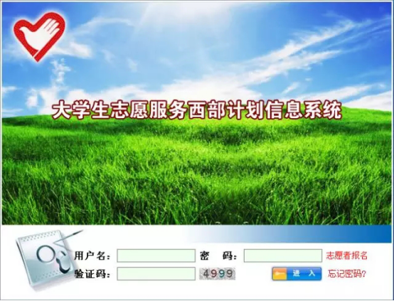 点击报名入口进入大学生志愿服务西部计划信息系统(//west.youth.cn/main/login.html)(见图二)。