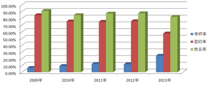 武器发射工程是一个军工特色鲜明的专业,本专业在20世纪90年代以前,就业途径全部为计划分配模式,全部毕业生都进入兵器行业的企事业单位中,在九十年代以后学生与就业单位双向选择,国家不再包办分配,学生的有了更宽的选择领域,但目前大部分的学生就业单位仍在军工行业,我校作为全国武器发射工程专业本科人数培养最多的院校,就业率一直较高,近五年来就业率一直高于80%,只有少部分同学选择自主择业,从近五年的数据分析来看,随着国家加大国防建设力度,军工行业的效益逐渐提高,单位的用人门槛也在随着提升,有更多的学生选择继续深造,考研率从6%增加到24%左右。